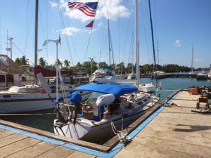 We moved the boats the next morning. Captain was making a bigger deal out of it than seemed warranted. He had myself and the Canadian brothers wait on the dock as he approached way too close to various other boats. I found it odd he didn't want another person on the boat to toss the line. I shouted careful you're steering wind vane is going to hit that boat. The captain of that boat rushed out to his stern as our wind vane and one of his dinghy davits made contact with a scrapping noise. I jumped on the boat as it passed by the dock, immediately pushing it away from contact with another boat. Soon there were about 6 or seven other people watching and giving recommendations. Finally between my pushing the bow out away from the boat sharing the berth and the stern line now in the hands of the Canadian brother, the boat was pulled into position stern first.